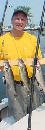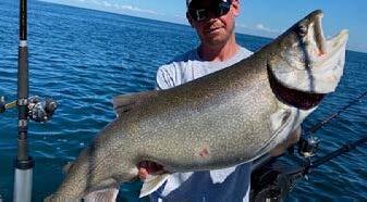 Capt. Mike Stilin’s clients were having a very good day Aug. 13, 1998, fishing off Oswego Harbor. They had netted some nice salmon when Stephen Sheets Jr. of Woolrich PA landed another big fish using cut bait with an A-Tom-Mik bait head. Stilin recalls the fish looked too large to be a coho but didn’t look like a Chinook. They headed back to Oswego to meet DEC biologist Les Wedge. After several tests and using certified scales borrowed from the Oswego Speedway, that afternoon Wedge announced a new 33-lb., 7-oz. record coho.