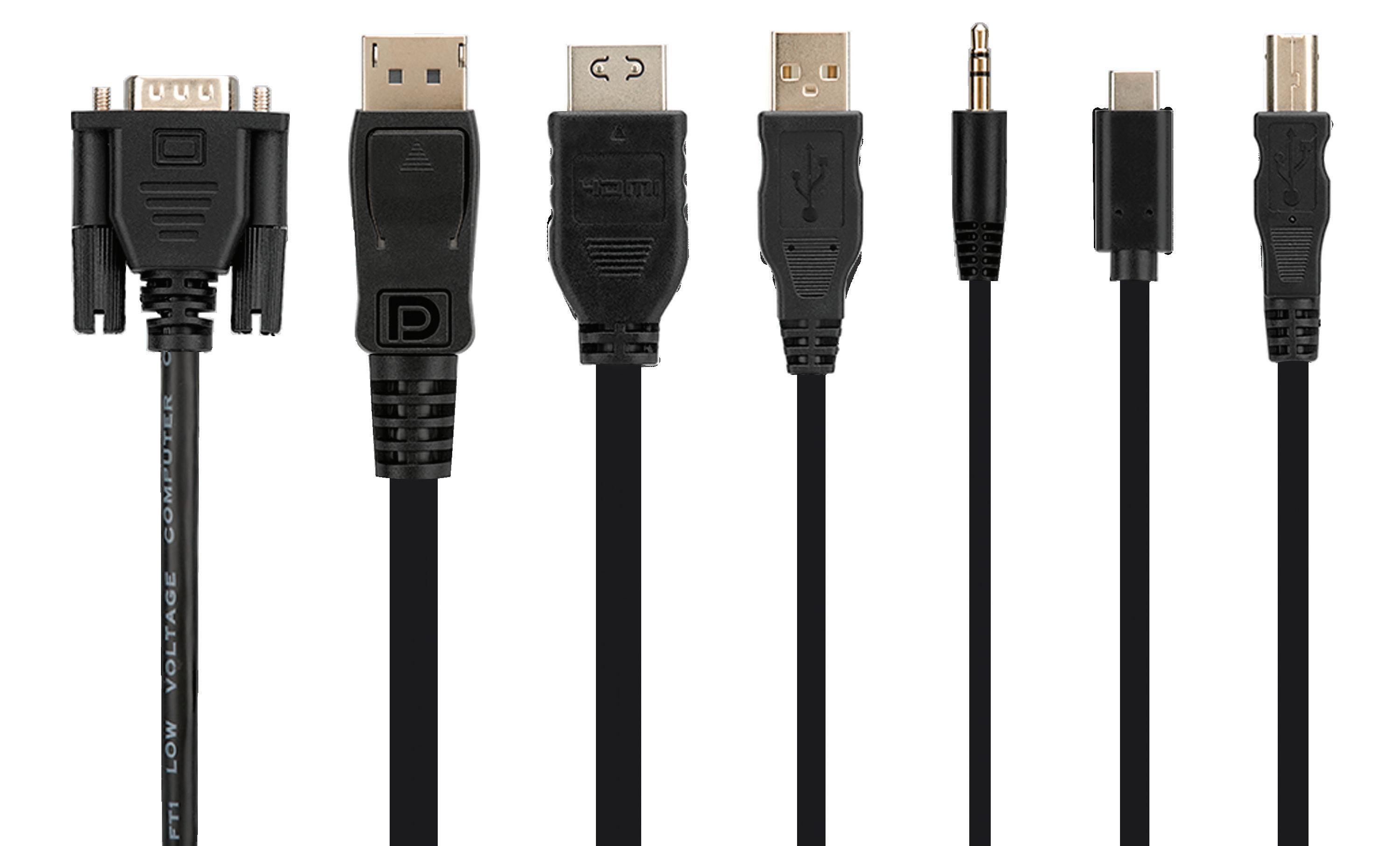 Belkin offers a range of purpose-built cables designed to work seamlessly with our Modular and Universal Secure KVMs, ensuring both reliable signal integrity and adherence to security requirements. These cables support common video and peripheral interfaces such as DVI-D, HDMI, DisplayPort, USB, and audio, helping connect a mix of legacy and modern endpoints without additional adapters.