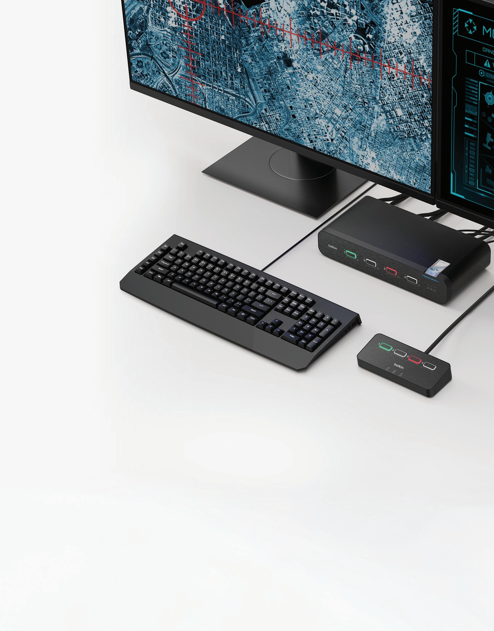 Belkin offers a full ecosystem of Secure KVM/KM accessories designed to improve usability, workspace ergonomics, and secure deployment options around our Secure KVM/KM switches.