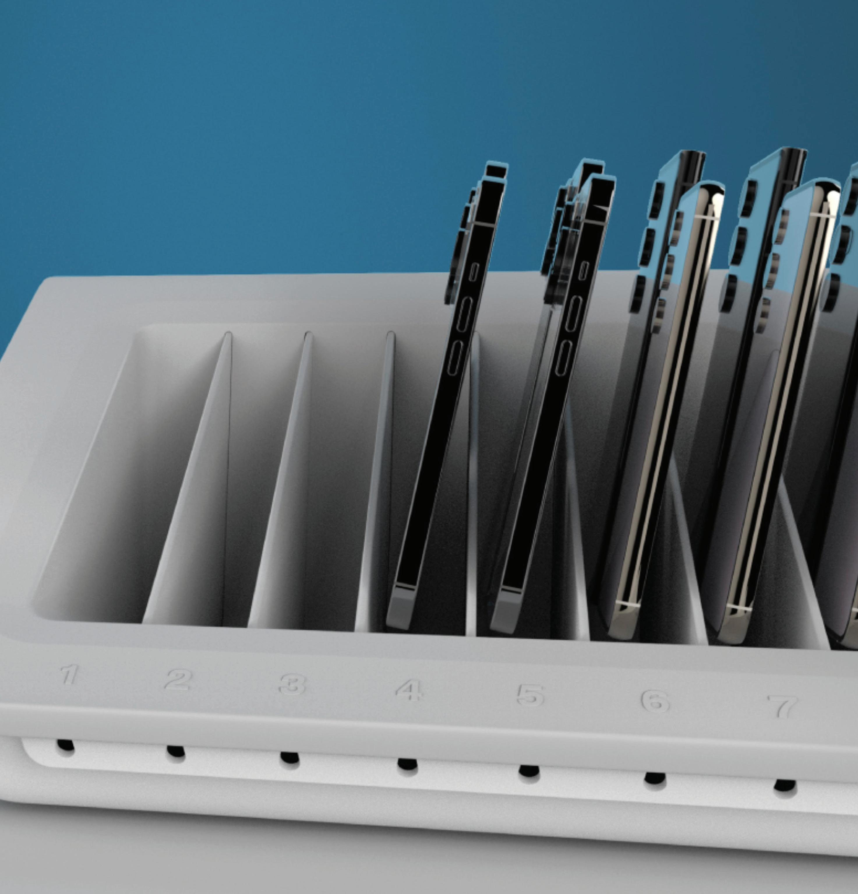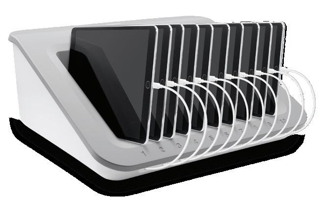 • Charge 10 devices simultaneously with fixed divider compartments.