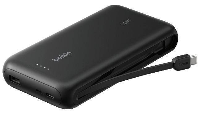 • 1xUSB-A port, 1xUSB-C port, and an integrated USB-C cable let you charge up to three devices simultaneously.