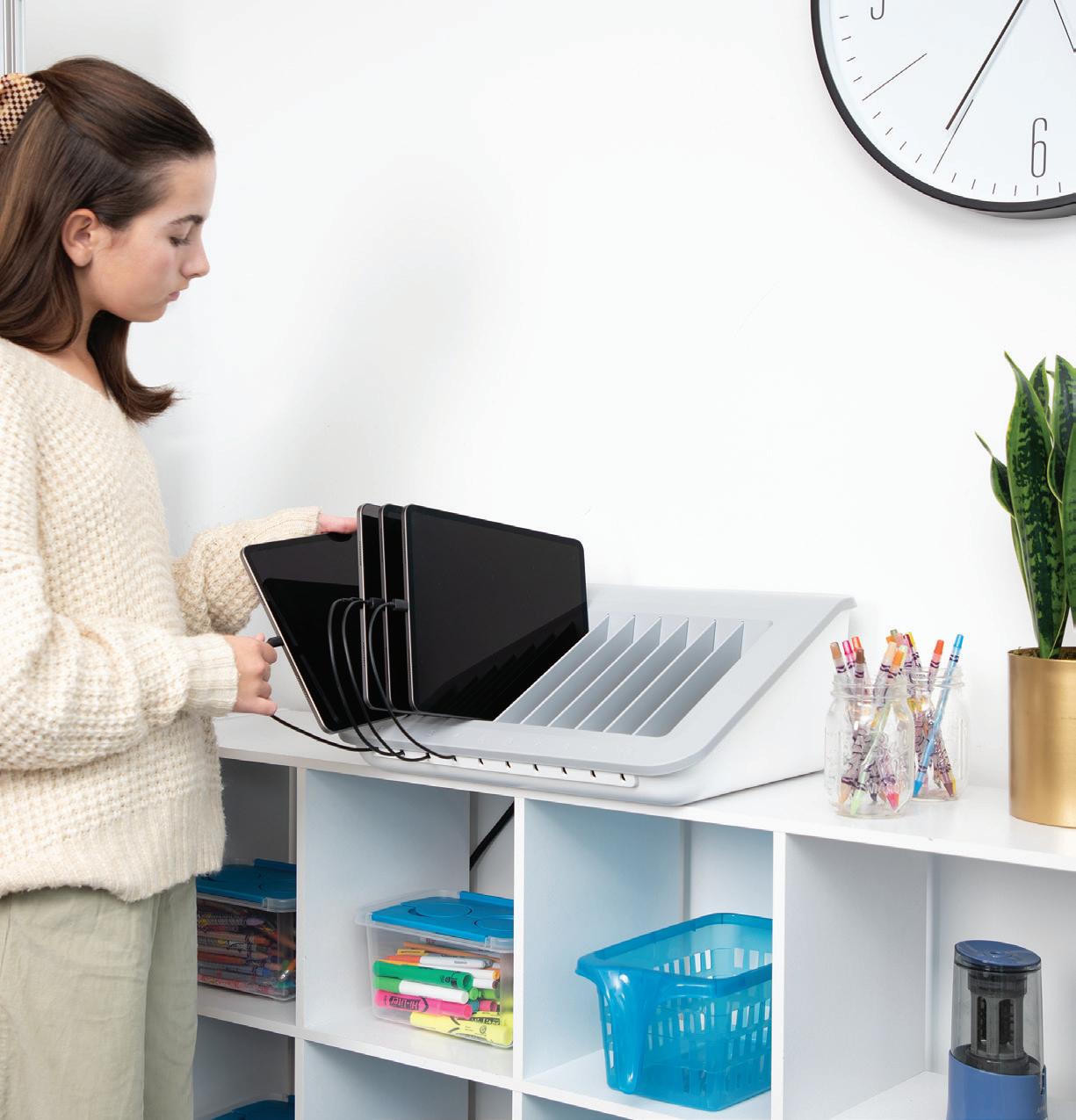 • Store and charge up to 10 Chromebook devices, laptops, or tablets simultaneously.