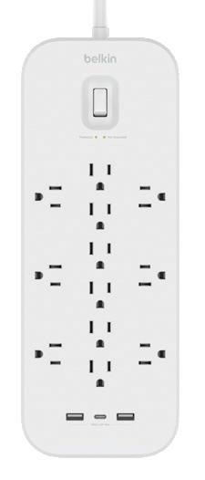 • 12 AC outlets, 2 USB-A + 1 USB-C port.