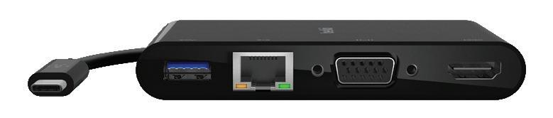 • Expands USB-C port into an HDMI port, DisplayPort, VGA port, 3 USB-A ports, Gigabit Ethernet port, SD and MicroSD card readers, 3.5mm audio port, and USB-C PD port.