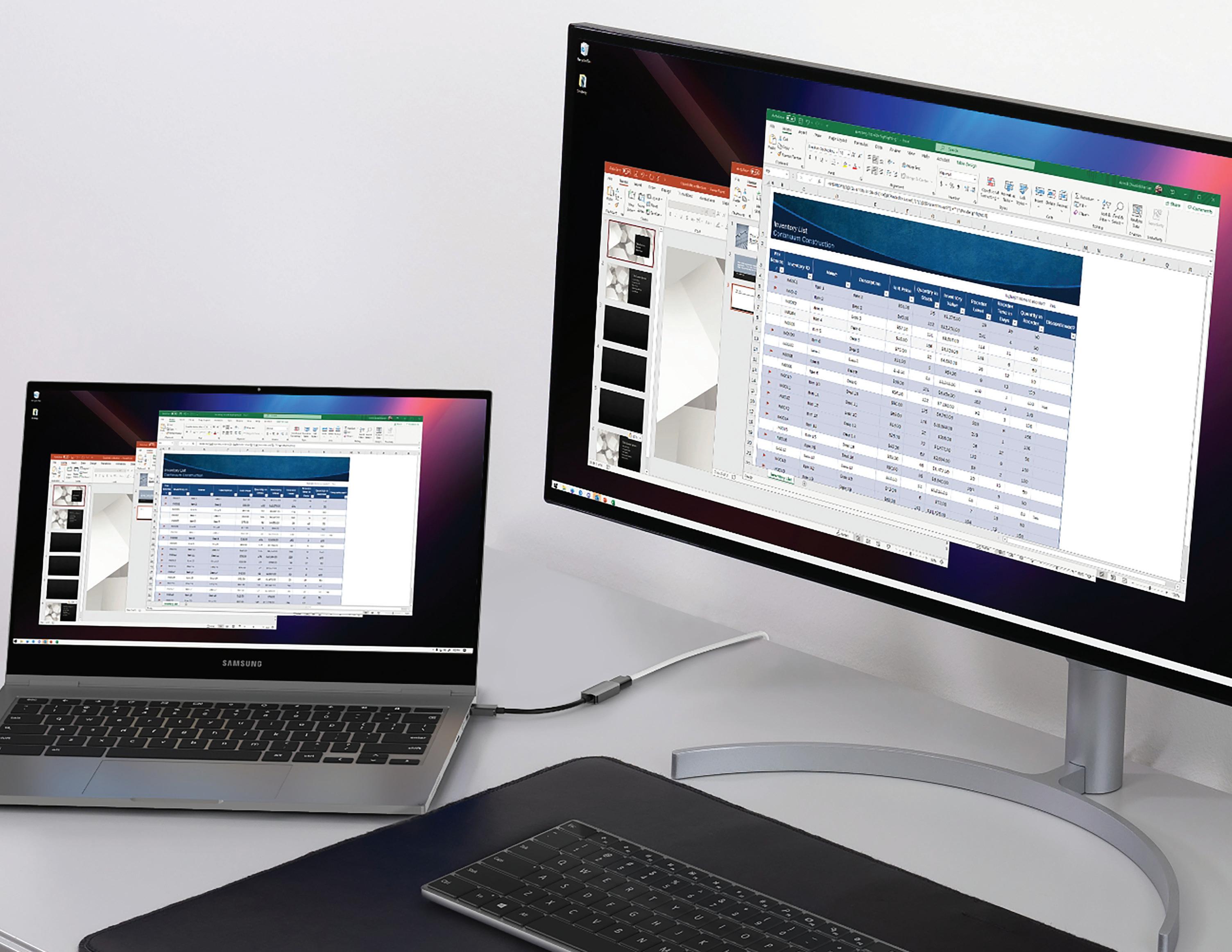 • Universal display connectivity for MacBook, Chromebook, and Windows laptops.