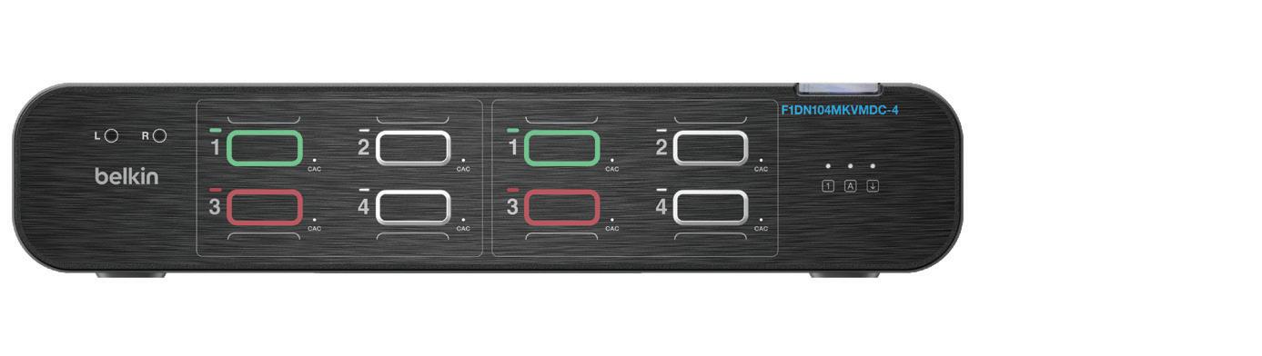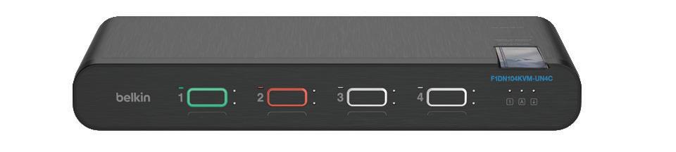 • HDMI host and console video ports, analog audio ports, and RCU port (remote control) blocked to ensure optimal security and improve isolation. Users change SKVM channel via front of the SKVM unless they are using the Belkin KVM Remote Control with Integrated Keyboard (F1DN008KBD).