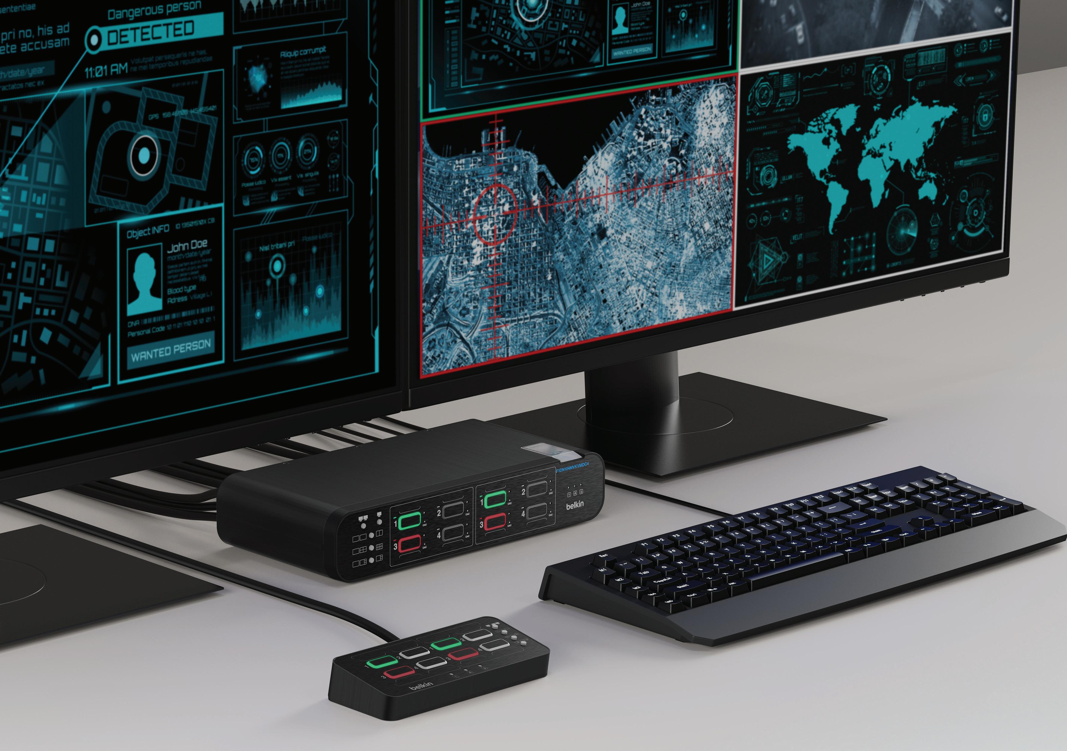 • Innovations for optimal user experience: Compatible with the Belkin KVM Remote Control with Integrated Keyboard, delivering the ultimate solution for decluttering the desk while enhancing the operator's awareness of the security domain they’re working in.