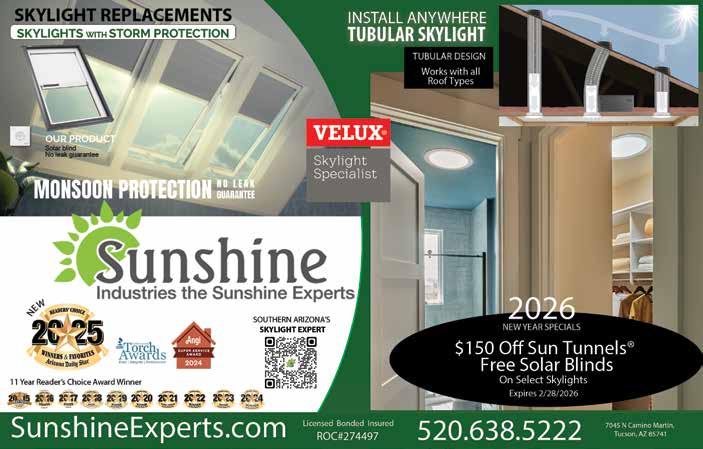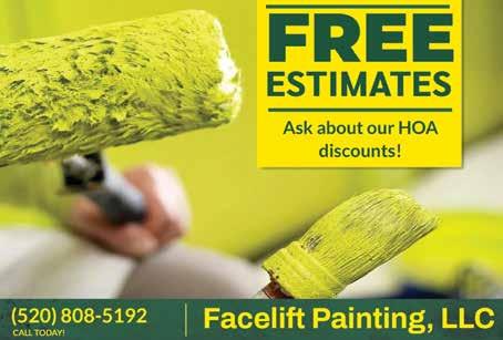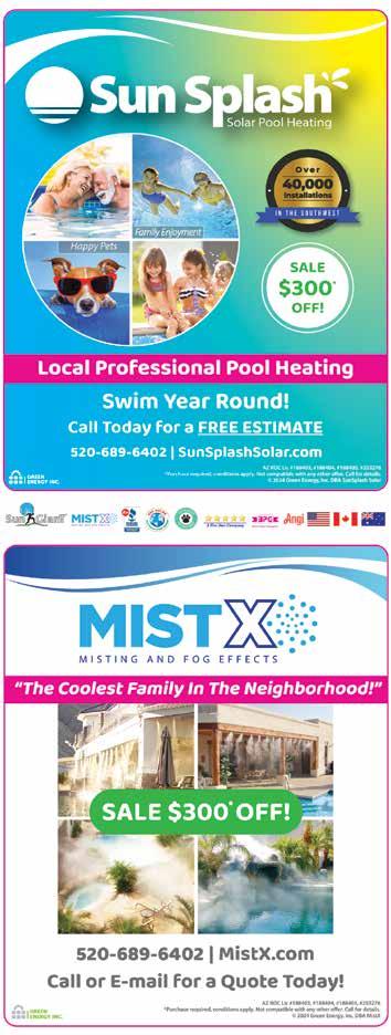 This month’s featured advertiser and front cover photo is from Diamondback Desert Scapes, LLC. They are a proud Tucson family-owned and locally operated business serving Tucson and the surrounding areas. Born and raised in Tucson, Jacob has always been passionate about quality work and doing things the right way. Specializing in Landscape and Hardscape, you will enjoy the process from your first meeting to the day the installation is finished. Their goal is to make your vision come to life! See their ad on pages 10 & 11 for more details!