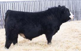 HOMO POLLED. HETERO BLACK. 3/4 BLOOD SIMMENTAL. APPROVED FOR HEIFERS. Another chance to acquire a black Top Tier calving ease bull. This one came super small with a big shot of vigour! 85 lb birthweight and off a RF Jaguar female. Jaguar was used successfully for many years in our heifer pen. Last year Jaguar raised the high selling bull in our sale! The 14L dam is a black baldie female who is very feminine and has a great amount of mothering ability. 67N has a great hoof under him and is extremely smooth and attractive in his throat and neck structure. Nice small head and clean shoulders. Calving ease bull that will make growthy calves!
