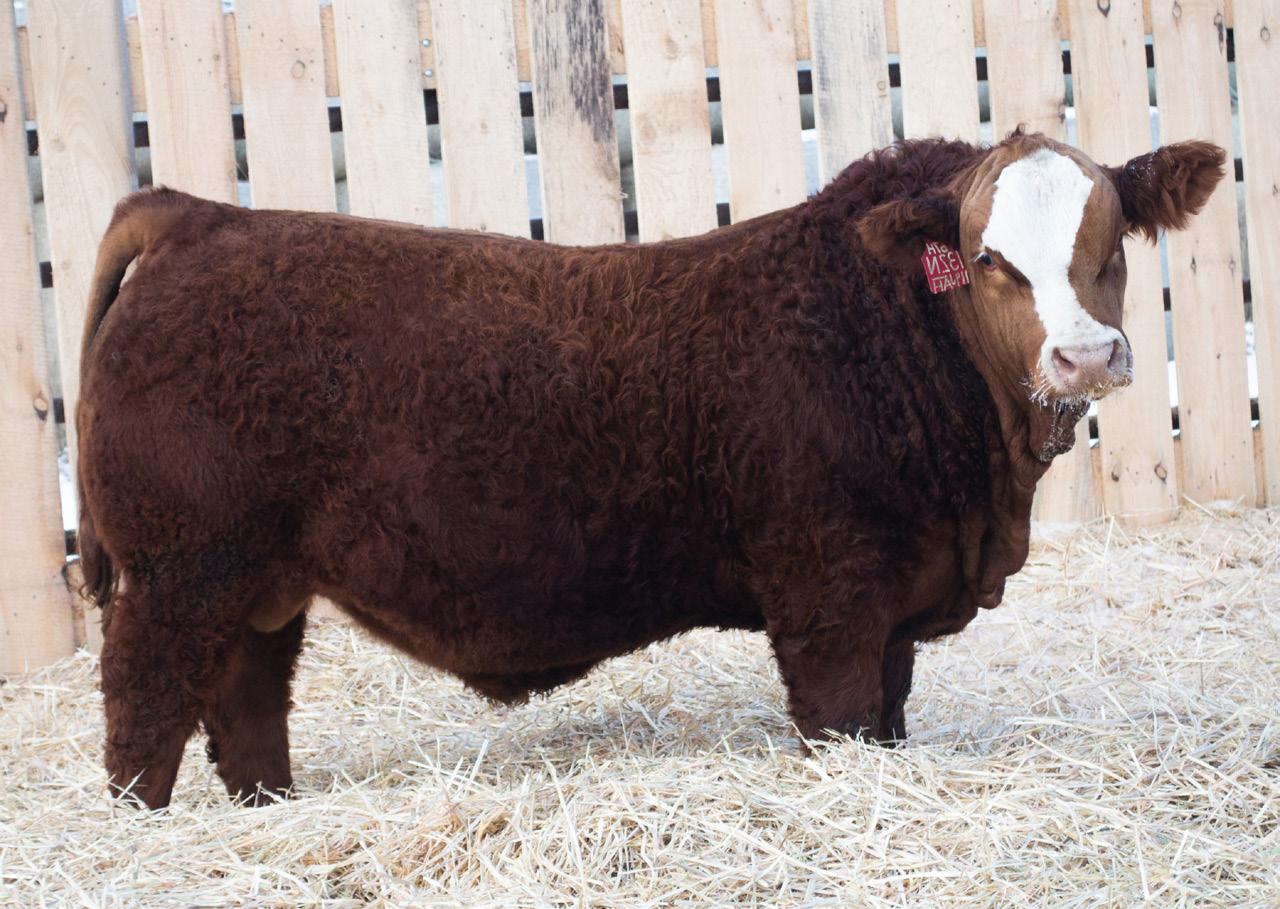 HETERO POLLED. PUREBRED. The great half fleck, half red Simmental The best cross I think in the cattle business! This guy is truly one of the coolest individuals in the pen. Big time haired, tons of top, and the definition of a beef bull! This Liberator calf shows how good the Simmental breed crosses between reds, and fullbloods are. He comes from the great Emma cow family that you will notice throughout the catalogue. His Dam 847F was a great female that we had for many years and assembled quite the female factory with many heifers being retained! We unfortunately lost her due to injury this fall. This one is likely to go out and work for a few different types of operations. Building females around or putting dollars in your pockets! 6N is a looker!