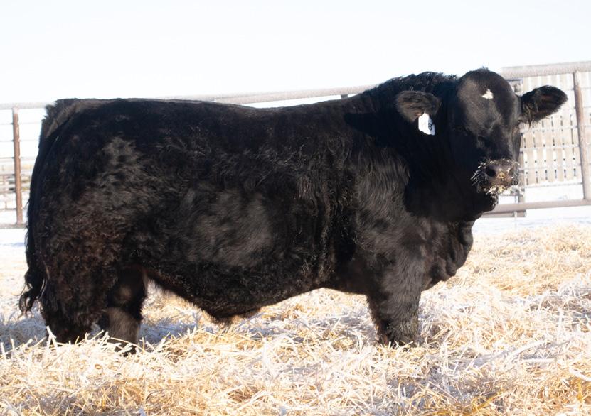HOMO POLLED. PUREBRED. I really appreciate this one with his softness and muscle. He has a beautiful skeletal makeup and comes from the great Houston cow family. This cow family is one of the highest grossing cow families that we have. His maternal grandmother is the cow that produced the great 17H Cash bull that sold to Cole and Landon Weiss at Maple Creek. His Dam 138J is a flawless female off the Car Bomb bull that we had from Mappins a few years ago. A smaller 88 lb birthweight will make him work great on a wide variety of females, big, small, young or old. He will get the cows settled and make some consistent calves. 147M was in our 2025 Sale where he sold to our great friends and neighbours, and he ended up not needing him. We used him ourselves on some cows on cleanup and thought that he could Anchor the pen of two-year-olds. Extra size, extra age, extra cows will get bred!