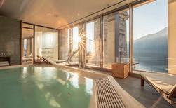 Duft der Fichtennadeln und schwimmen Sie inmitten aufragender Berggipfel - und abends durch die raumhohen Glasfassaden des Panorama-Restaurants den Sternenhimmel bewundern.