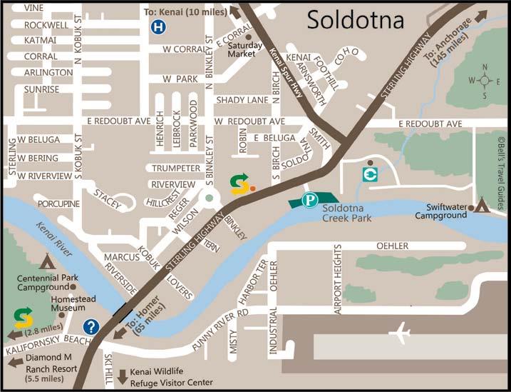 4 Bell’s Travel Guides Anchorage 21 copper center 43 glennallen 40 girdwood 36 Portage recreation Area 37 valdez 47 Wrangell-St. elias 44 Whittier 38 chicken 126 delta Junction 119 denali national Park 95 Fairbanks 105 healy 103 nenana 104 north Pole 118 Tok 121 Anchor Point 74 cooper Landing 66 homer 75 hope 57 city of Kenai 71 ninilchik 73 Seward 58 Soldotna 68 Sterling 67 Palmer 82 Talkeetna 85 Wasilla 89 State driving Map 6 Parks highway 10 r ichardson h ighway 14 Tok cut-off 17 glenn highway 19 Seward h ighway 56 Sterling h ighway 65 denali highway 94 Alaska highway 128 SouthCentral highway MapS Kenai peninSula MatanuSK a-SuSitna interior alaSK a ©iStock.com/studiocasper