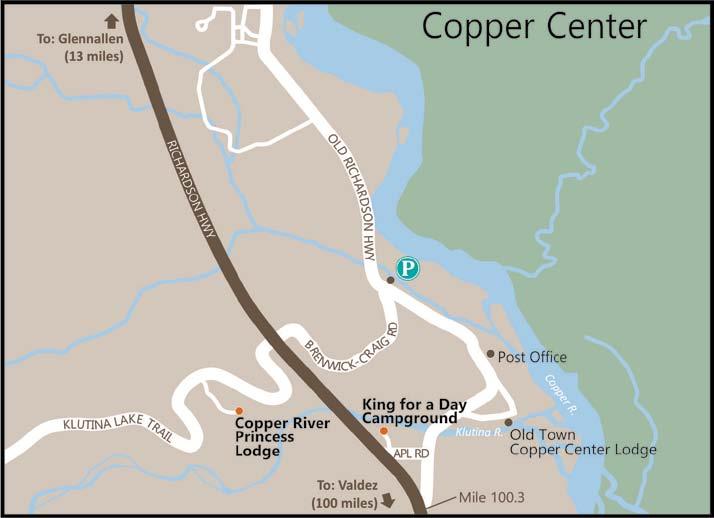 Copper Center, accessed via a loop road at mile 100 or mile 106, is one of the oldest white communities in Alaska’s Interior and served prospectors heading north during the gold rush days. The Copper Center Visitor Center Complex is at mile 107 of the Richardson Highway. It includes a bookstore, exhibit hall, theatre, scenic overlook and hiking trails. This is an excellent Visitor Center for those looking for information on visiting Wrangell-St Elias National Park. Open mid-May through September. 907-822-7250