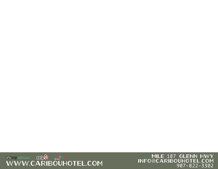 Morris Thompson Cultural and Visitors Center 101 Dunkel Street • Downtown Fairbanks 8am-6pm Summer • 8am-5pm Winter