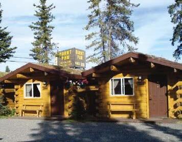 Burnt Paw Cabins is an authentic Alaskan Bed & Breakfast experience. Each cabin has its own carefully crafted Alaskan theme and includes a microwave, fridge, Wi-fi & satellite TV. A continental breakfast is provided to guests to enjoy in their room. Look for the sign for Burnt Paw Gifts next to the Post Office at mile 1314.3 Alaska Highway. For reservations call 907-8834121 or book online.