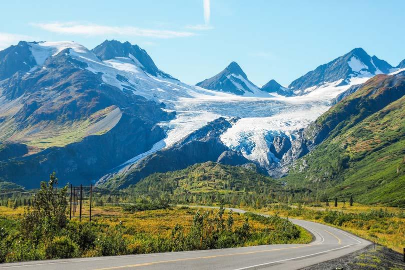 The Glenn Highway traverses the 189 miles from Anchorage to Glennallen and is part of Alaska Route 1. Bear, moose, caribou and Dall sheep populate the area and there is excellent grayling, trout & salmon fishing in many streams and rivers. There are great campgrounds and incredible mountain views along the way. The section of highway from Anchorage to mile 139 is designated as a National Scenic Byway.