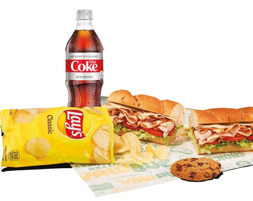 PICK UP YOUR MEAL TO GO! ORDER ONLINE AT SUBWAY.COM All snack brands are registered trademarks owned by Frito-Lay North America, Inc. © 2022 © 2022 The Coca-Cola Company. “Diet Coke” is a registered trademarks of The Coca-Cola Company. ®/© Subway IP LLC 2022.
