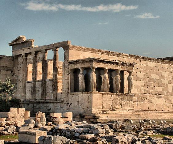 La posizione angolare, la scansione delle vetrate suggerita dalla quattro colonne ribattute a lato da altre due, ricordano le proporzioni greche dell’Eretteo all’interno dell’acropoli.