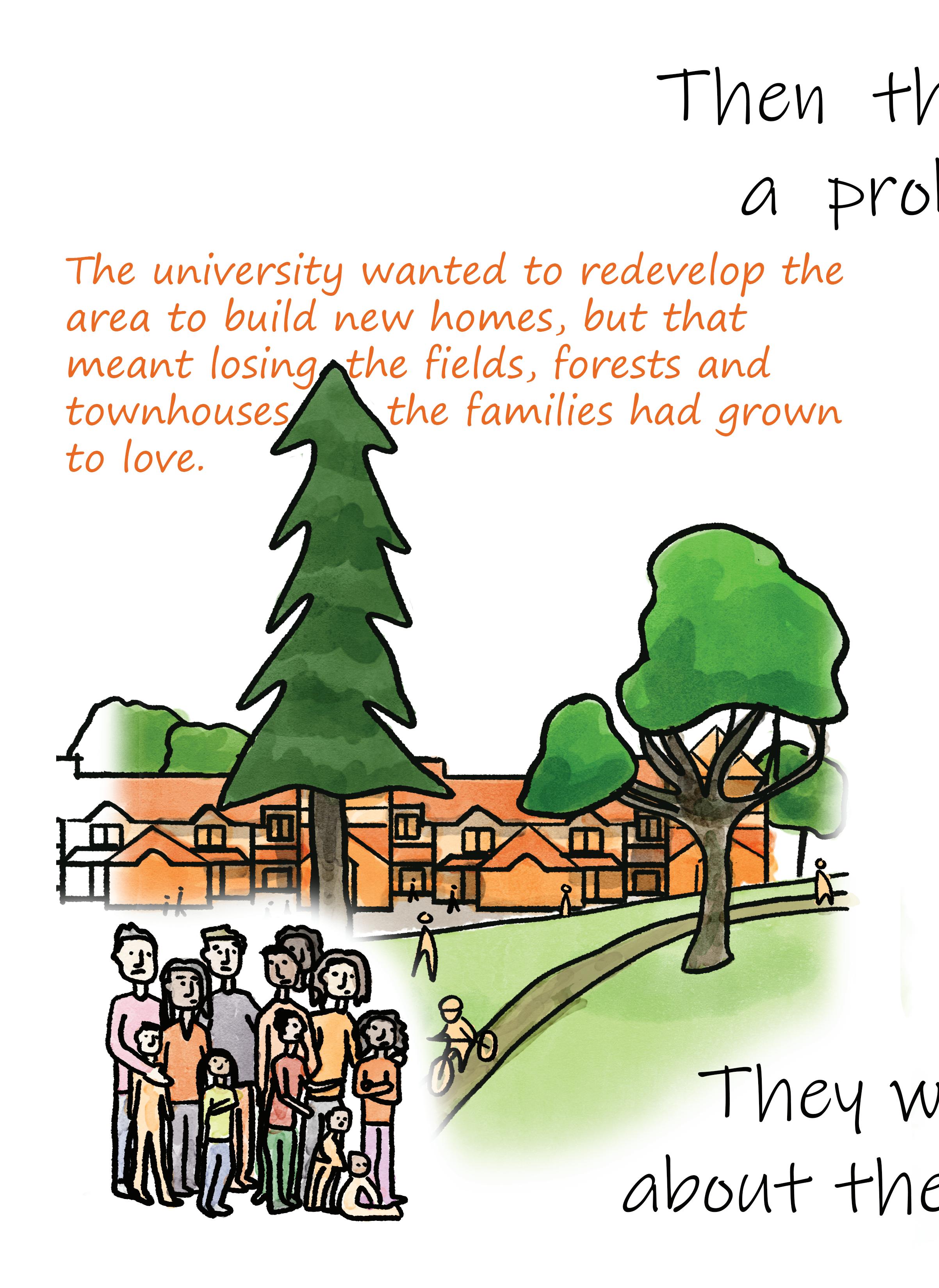 I learned about the ongoing struggle of student families living there to protect their community from demolition and replacement of existing housing and green spaces with high rises and market housing. However, I challenged myself to tell this story from both the residents’ perspective and the university’s perspective, because there are benefits and drawbacks to both views.
