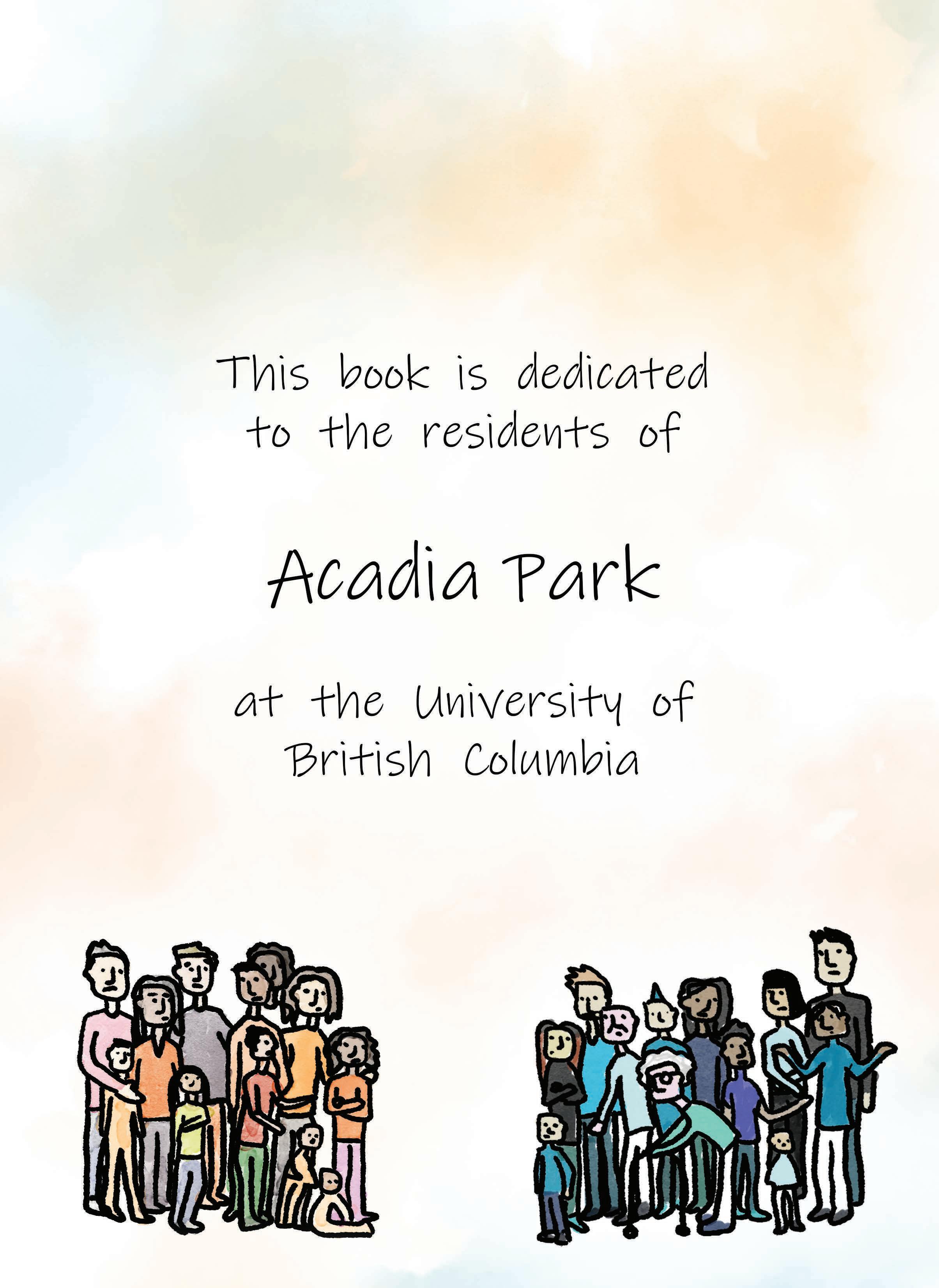 I created this book as part of my graduating thesis project for the Bachelor of Design program at the University of British Columbia. I was inspired to write and illustrate a children’s book after researching Acadia Park and its residents.