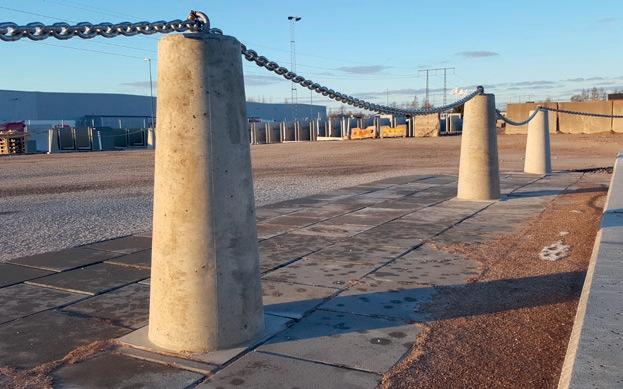 Parkeringsplint Flexi är lämpad för enkel och flexibel avgränsning av parkeringsytan. Plintarna binds samman med t.ex. en tryckimpregnerad regel.