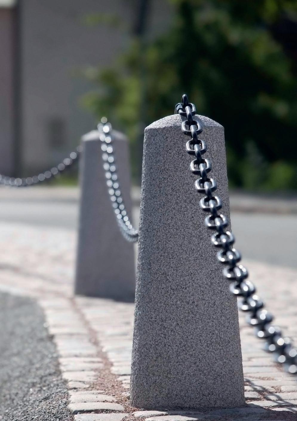 En lika vacker som prisvärd granitstolpe med eller utan belysning som är idealisk som till exempel trafikdelare på gator och torg eller andra platser med behov av avgränsningar. De råkilade stolparna kan fås med valfria egna mått och med hål för montering av kätting eller belysningsarmaturer.