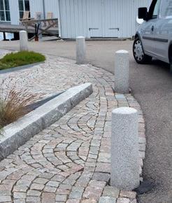 Grå Bohusgranit från Ävja eller Näsinge. Material från andra stenbrott kan också beställas. Pollare Elegant kan även beställas med polerad topp.