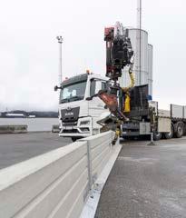 Utläggningskärran används för utplacering av spikade kantstöd. Stödet greppas direkt på pallen och läggs på plats.