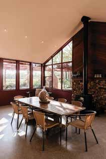Natural light defines the interior. The lounge is glazed to both east and west, creating a sense of openness and seasonal balance. “There’s natural light flying all around the house,” Drew says.