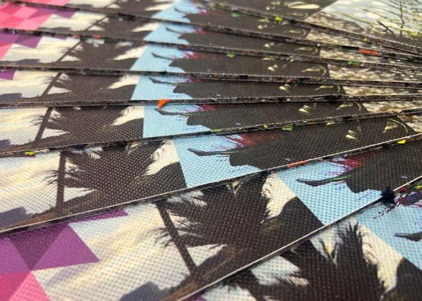 Options include Benefitz ST Print Floor, Benefitz ST Promo Carpet and Benefitz Printed Mesh can also be used for certain situations. All these substrates print in vibrant colour providing a great