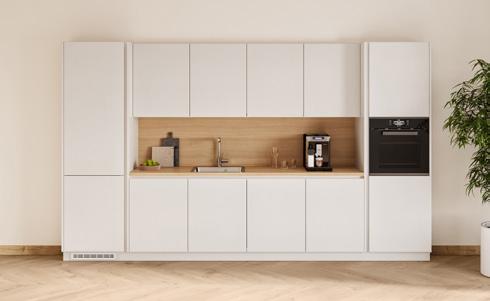 Zur Auswahl stehen zwei Varianten: die Küche VIBE mit klassischen Griffen und die grifflose Küche SMART. Ausgestattet wird jede Küche mit hochwertigen AEG-Elektrogeräten, auf die eine 5-Jahres-Garantie gewährt wird (nur auf das Kernsortiment aus dem Bestellformular). Weitere Details zu den Geräten sind im Bestellformular zu finden.