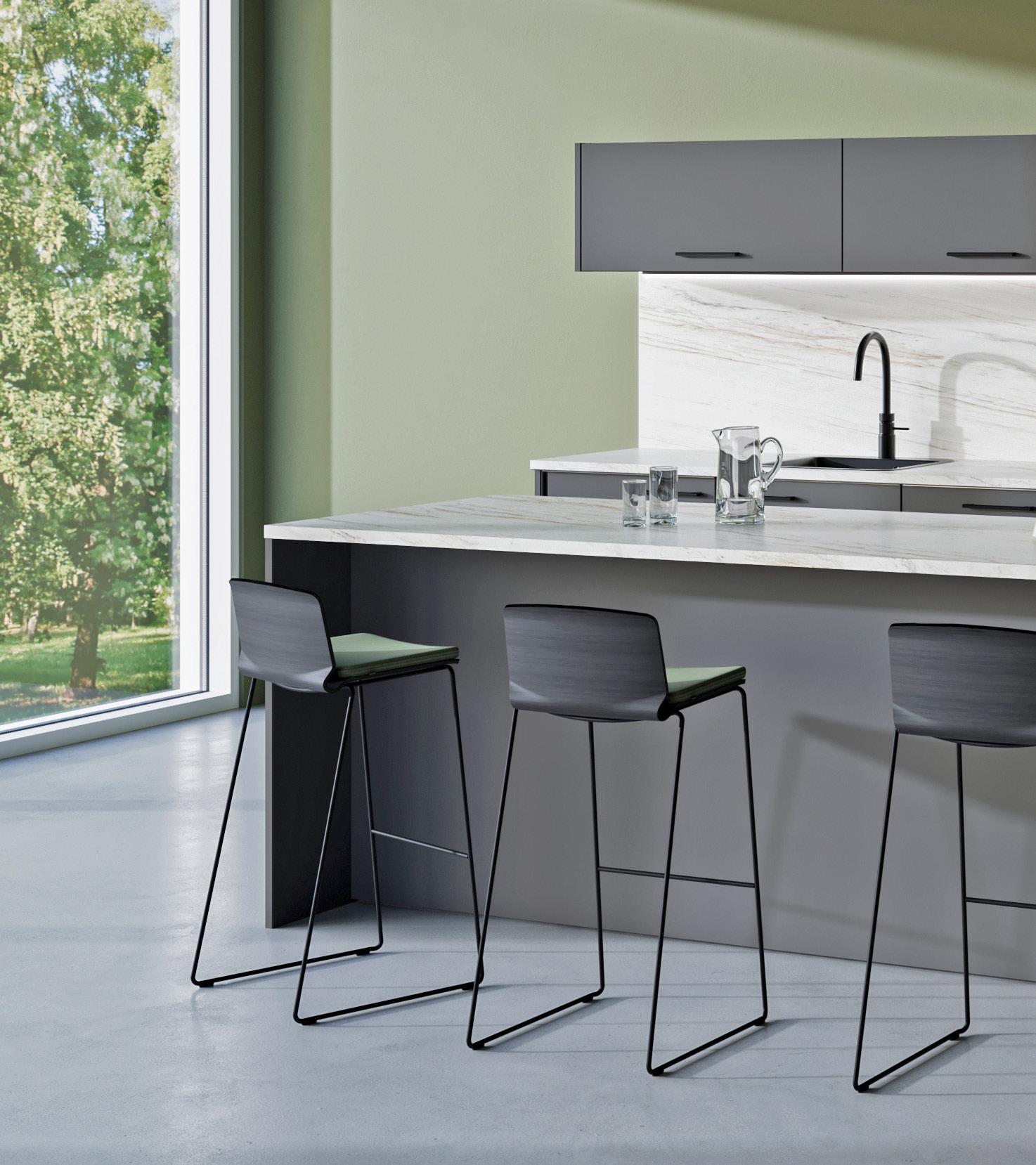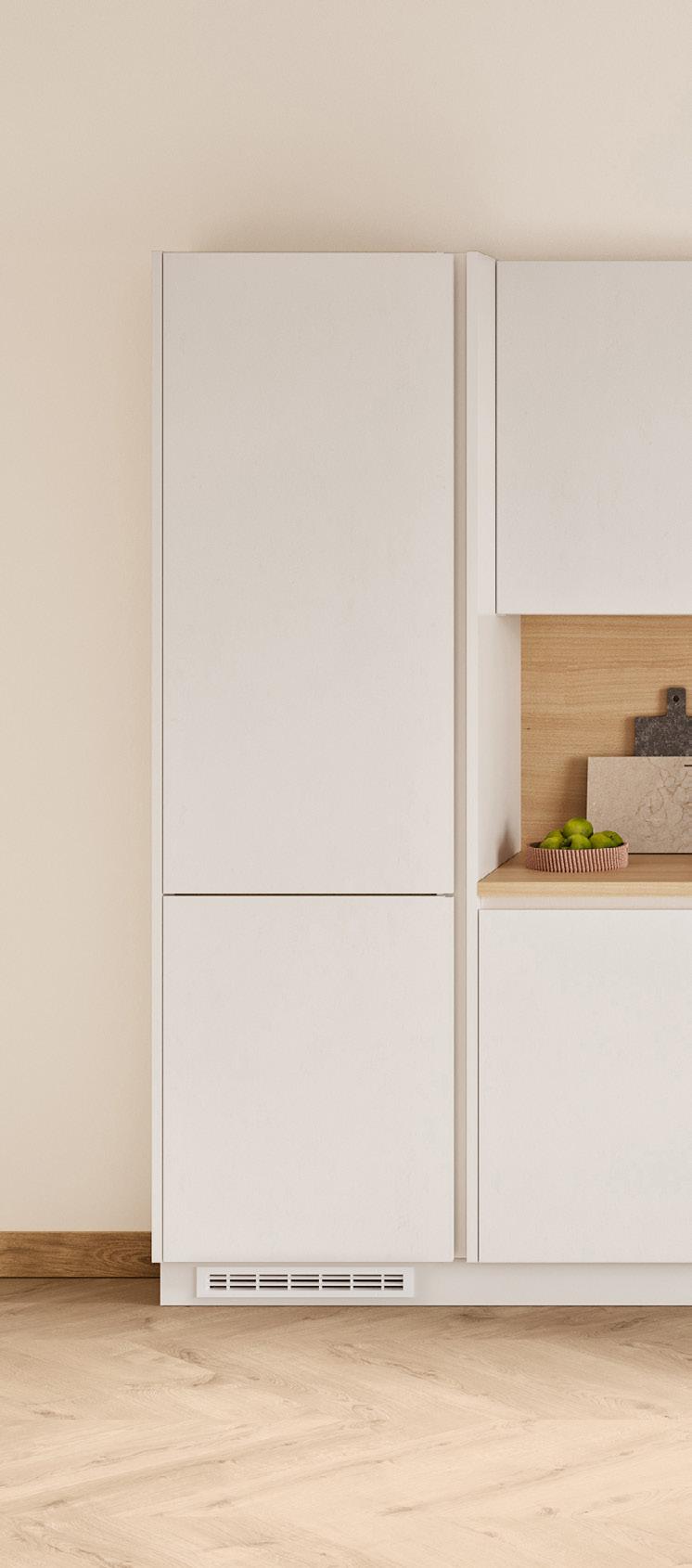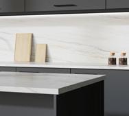 Das Küchenmodell VIBE mit klassischen Griffen, sorgt für einen zeitlosen Look. Es stehen Bügeloder Stangengriffe zur Auswahl. Diese können in unterschiedlichen Farben konfiguriert und waagrecht oder senkrecht an den Küchenfronten positioniert werden.