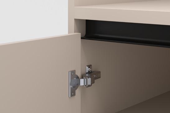 Flügeltüren sind mit selbstschließenden „CLIP-Scharnieren“, 3-dimensional justierbar und haben einen Öffnungswinkel von 110°