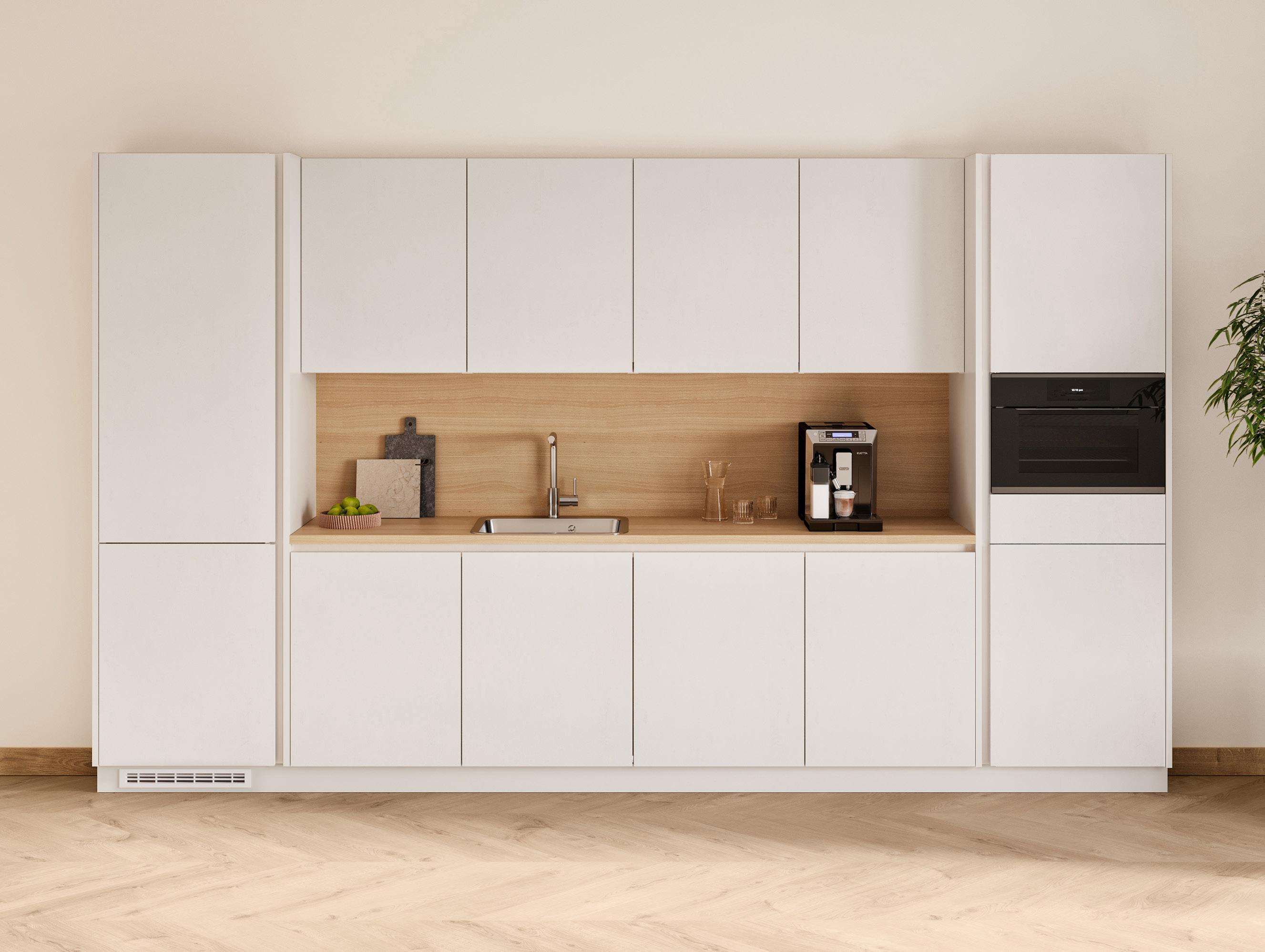 There are two versions to choose from: the VIBE kitchen with classic handles and the handleless SMART kitchen. Each kitchen is equipped with high-quality AEG electrical appliances, which come with a 5-year guarantee (only on the core range from the order form). Further details on the appliances can be found in the order form.