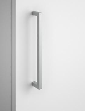 The VIBE kitchen model with classic handles ensures a timeless look. There is a choice of bow or bar handles. These can be configured in different colours and positioned horizontally or vertically on the kitchen fronts.