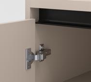 Hinged doors are equipped with self-closing ‘CLIP hinges’, can be adjusted in 3 dimensions and have an opening angle of 110°.