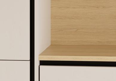 The concealed handle strips are orientated differently depending on the cabinet type: They run horizontally on bottom and top c abinets and vertically on tall cabinets. Material: Aluminium