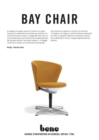 Vous trouverez la liste des certificats de produits ainsi que des récompenses/prix de design obtenus sur le site Internet de Bene : https://bene.com/fr/mobilier-et-concepts/mobilier-de-bureau/bay-chair-fr/