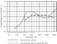 Absorption acoustique selon ISO 11654 coefficient d'absorption acoustique pondéré α w 0,65 (dans la zone à activation acoustique) Absorbeur de classe C