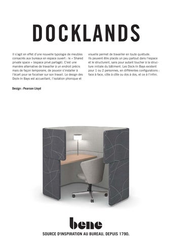 visuelle permet de travailler en toute quiétude. Ils peuvent être placés un peu partout dans l‘espace et le structurent, sans pour autant toucher à la structure initiale du bâtiment. Les Dock-In Bays existent pour 1 ou 2 personnes, en différentes configurations : face à face, côte à côte ou dos à dos, et ce à l’infini.