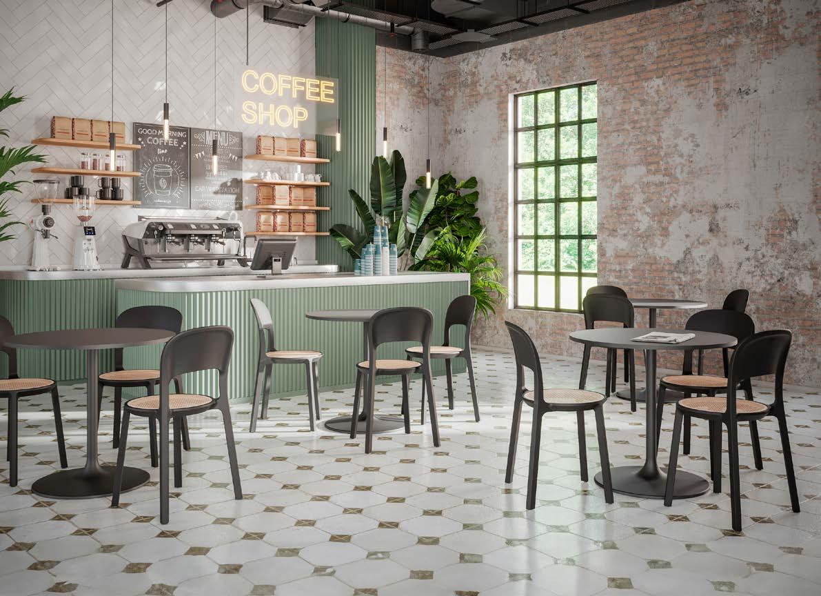 Les modèles en plastique ou avec rembourrage (mousse et tissu pour l’extérieur) peuvent également être utilisés dans les espaces extérieurs.