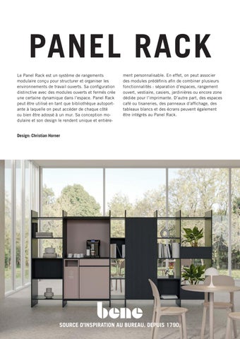 ment personnalisable. En effet, on peut associer des modules prédéfinis afin de combiner plusieurs fonctionnalités : séparation d’espaces, rangement ouvert, vestiaire, casiers, jardinières ou encore zone dédiée pour l’imprimante. D’autre part, des espaces café ou tisaneries, des panneaux d’affichage, des tableaux blancs et des écrans peuvent également être intégrés au Panel Rack.