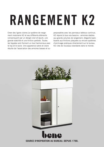 perposables avec les panneaux latéraux continus. K2 répond à tous vos besoins : armoires stables aux grands volumes de rangement, élégants backboards aux finitions plaquées ou encore systèmes d’archivage pratiques directement sur le bureau. K2 crée de nouveaux standards dans le monde.