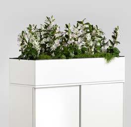 Une jardinière pour bac à plantes peut être placée en option sur tous types d’armoires. Disponible au choix avec ou sans bac à plantes. La jardinière pour bac à plantes doit être vissée au rangement bas lors du montage.