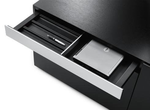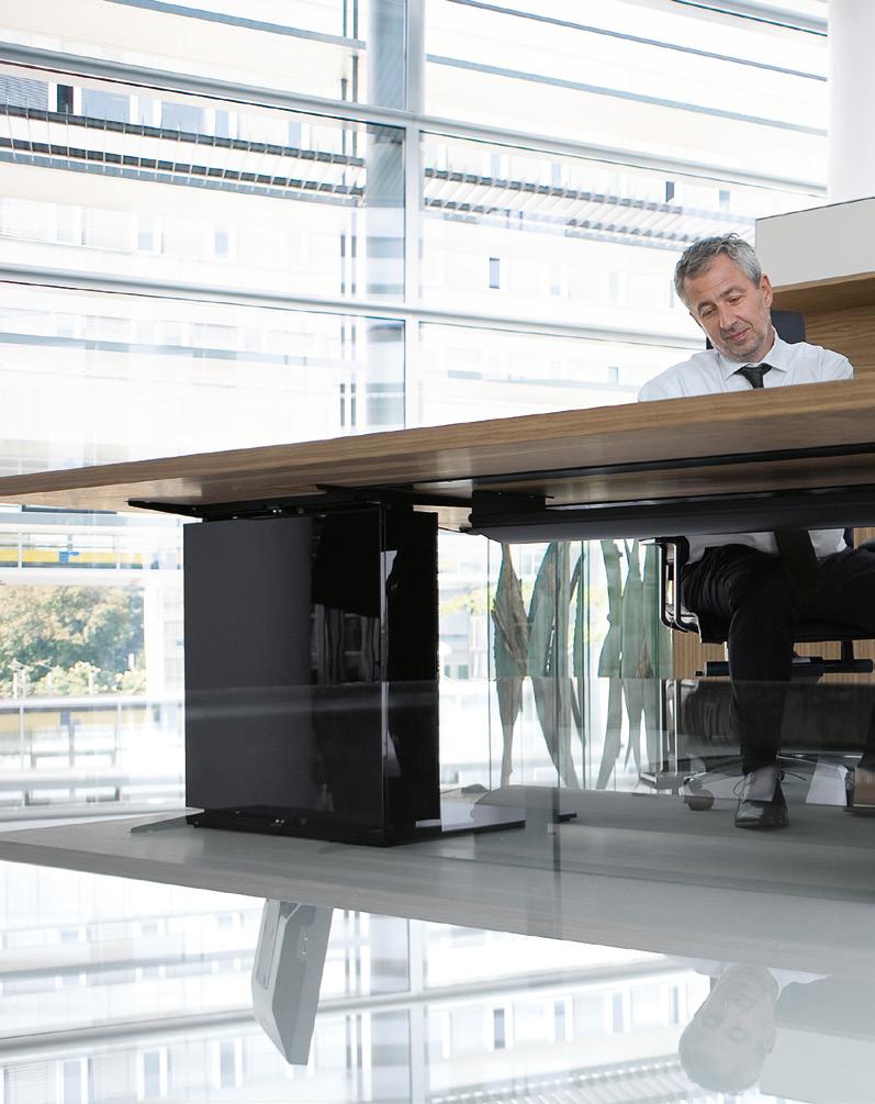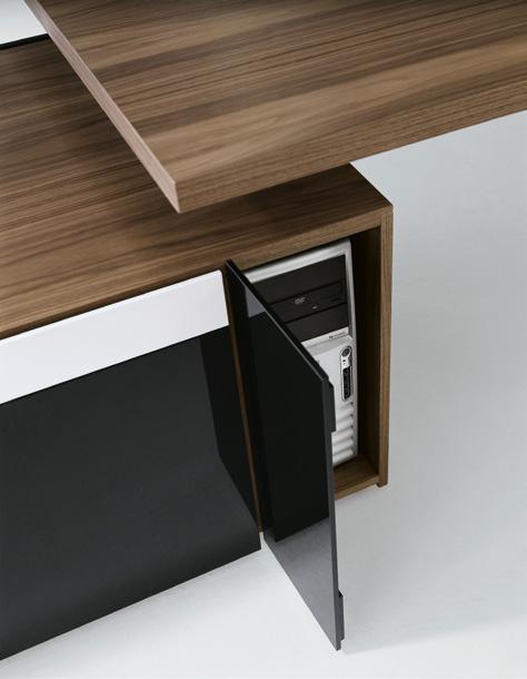 1 1 Verdeckter Stauraum für CPU, Drucker und Kabel. Moderne Technik darf heute im Management nicht mehr sichtbar, sondern nur mehr spürbar sein. Hidden storage for CPU, printer and cables: management expects technology to be available but not visible.