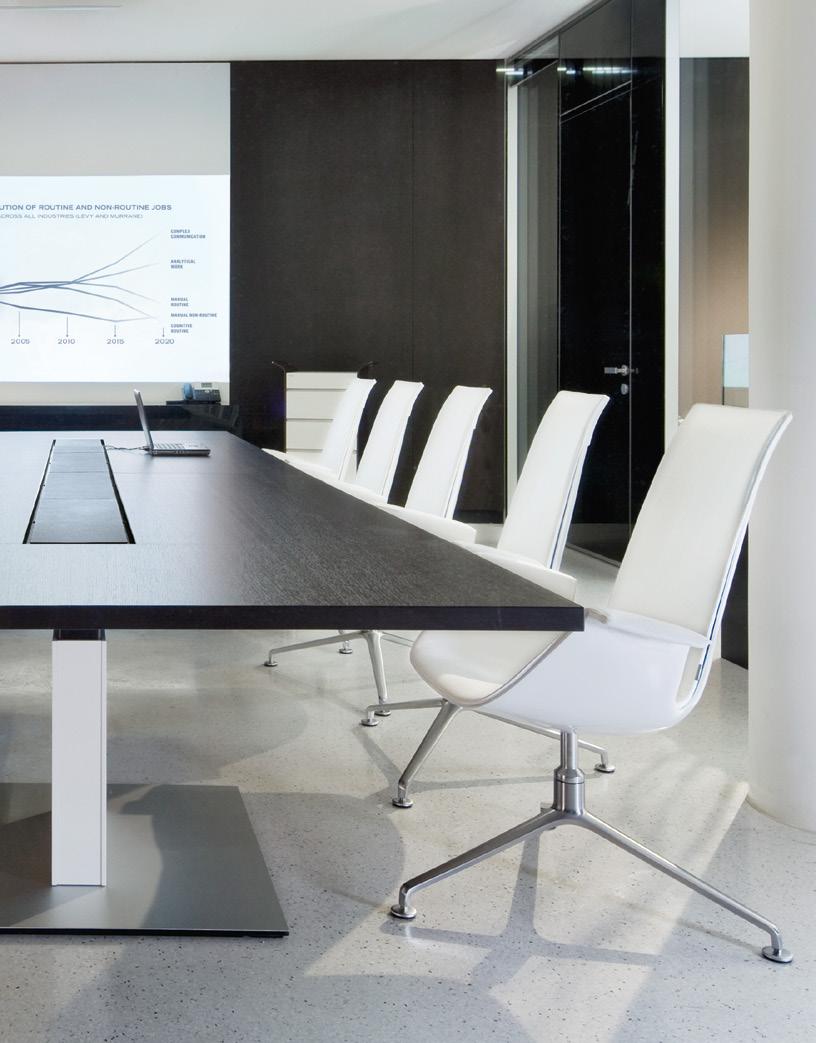 REPRÄSENTATIVE RÄUME für Besprechungen und Konferenzen sind Orte moderner Produktivität. Als Zentren der Kommunikation führen sie zu Ideenfindung, Kreativität und Innovation. Hier wird Wissen geteilt und die Zukunft entschieden.