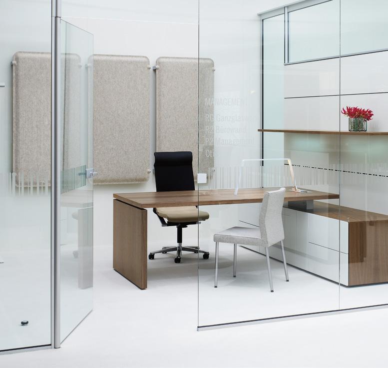 MANAGEMENTBÜROS beziehen ihre Wirkung aus unaufdringlicher Eleganz, klaren Linien und aus der Qualität der Verarbeitung. Sie sind Zeichen der Unternehmenskultur und des persönlichen Stils. Als kommunikative Drehscheiben im Unternehmen signalisieren sie Offenheit und zeigen den Mitarbeitern, dass sie willkommen sind.