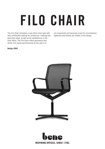 The Filo Chair embodies a new office chair type with very comfortable seating for conference, meeting and executive areas, as well as for workstations in the front office. The Filo Chair offers permanent flexibility: Filo reacts synchronously to the user’s mi-