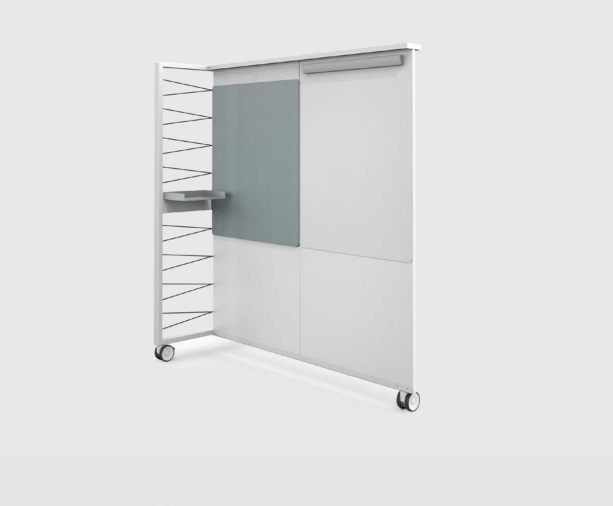 Mobile FRAME_S Boards (with castors) enable you to restructure open space in new ways whenever desired. They also facilitate the integration of work tools, such as flip charts and whiteboards, into a setting. This makes them not just room dividers but also analogous writing, work and presentation boards. There are two typologies available; the T-Type and Type. When equipped with PIXEL